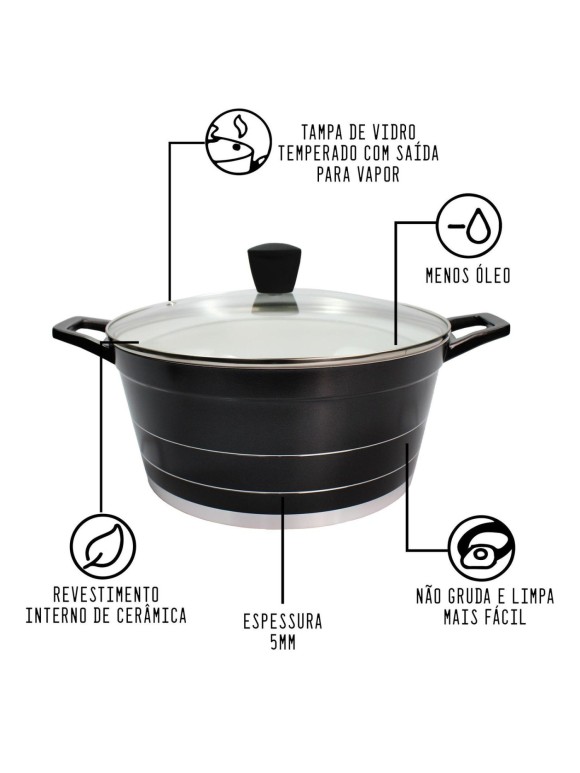 PANELA DE CERAMICA PRETA 28CM COM TAMPA DE VIDRO ID863PA